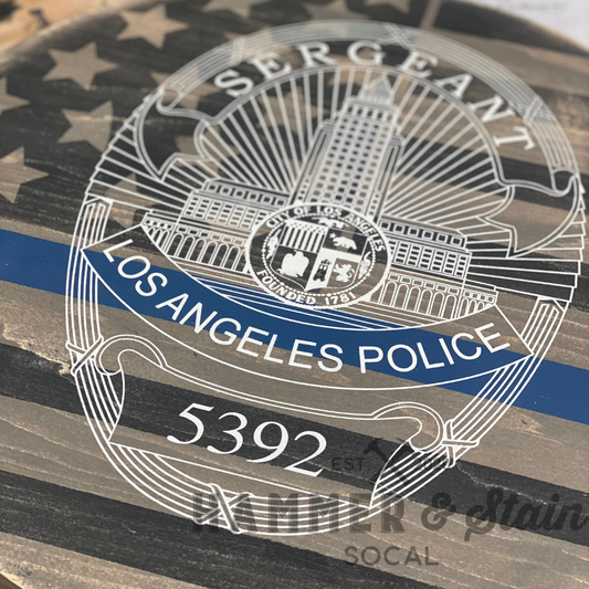 If you've met me, then you know that I am prior Law Enforcement, and the job holds a special place in my heart. I take great pride in these projects, and they are all made by me, with love. These projects are made retail and not available for our DIY experience.