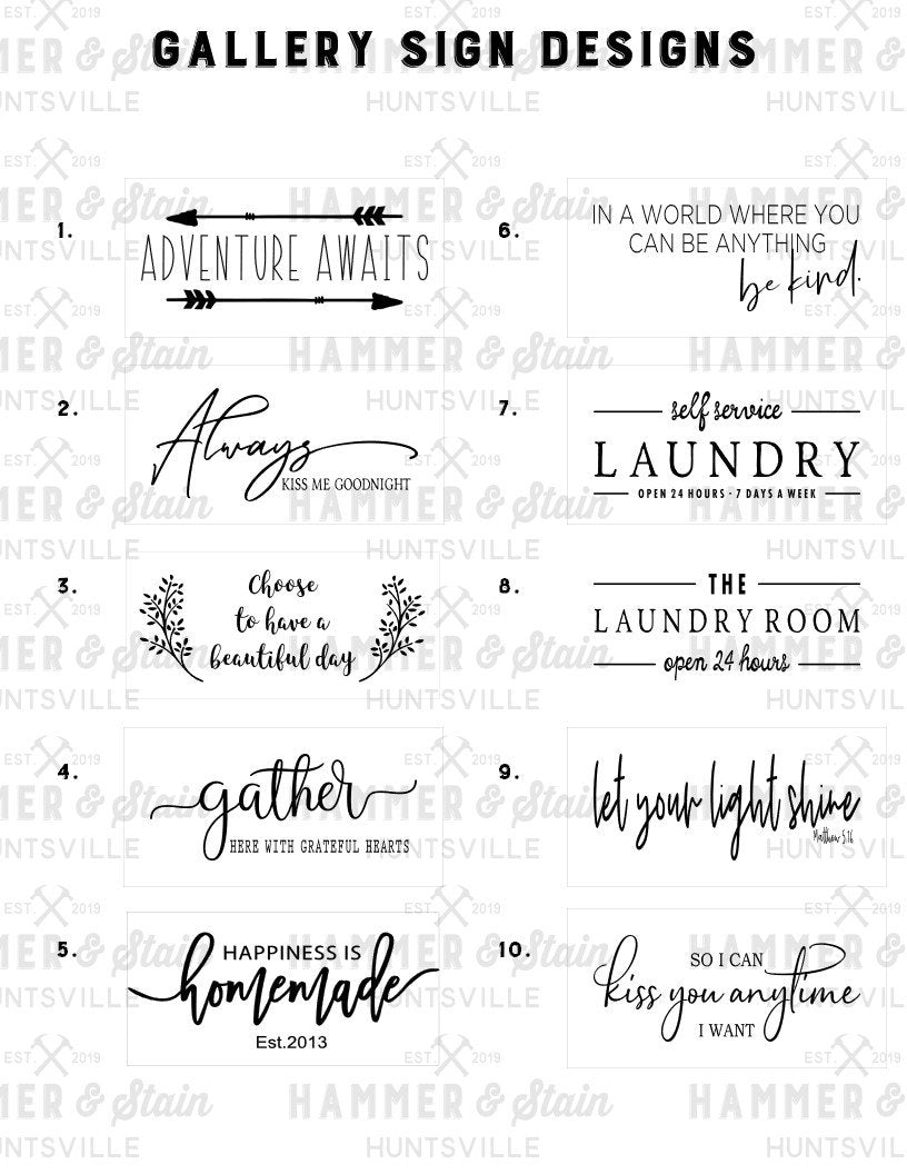 chips, knots and other natural blemishes that give it character! Some peeling may occur. We will do our very best to minimize disturbances to the words and make everything look intentional, but due to the nature of the workshop we can make no guarantees. Please keep in mind, no sign is absolutely perfect, as it is hand crafted, but it will certainly be wall worthy!