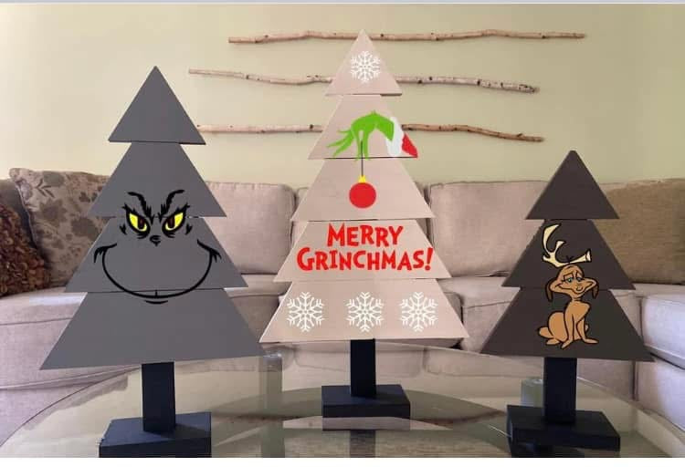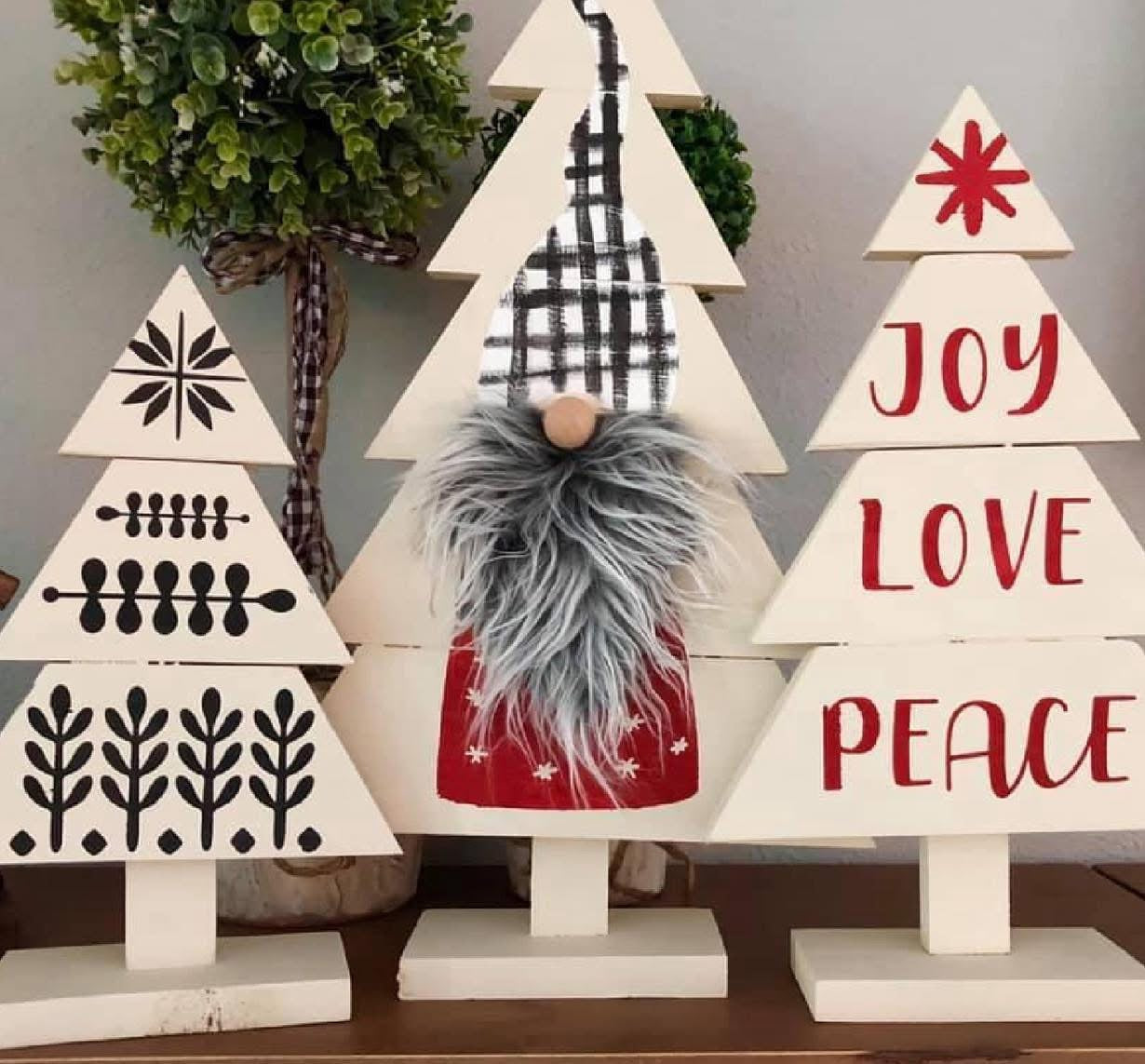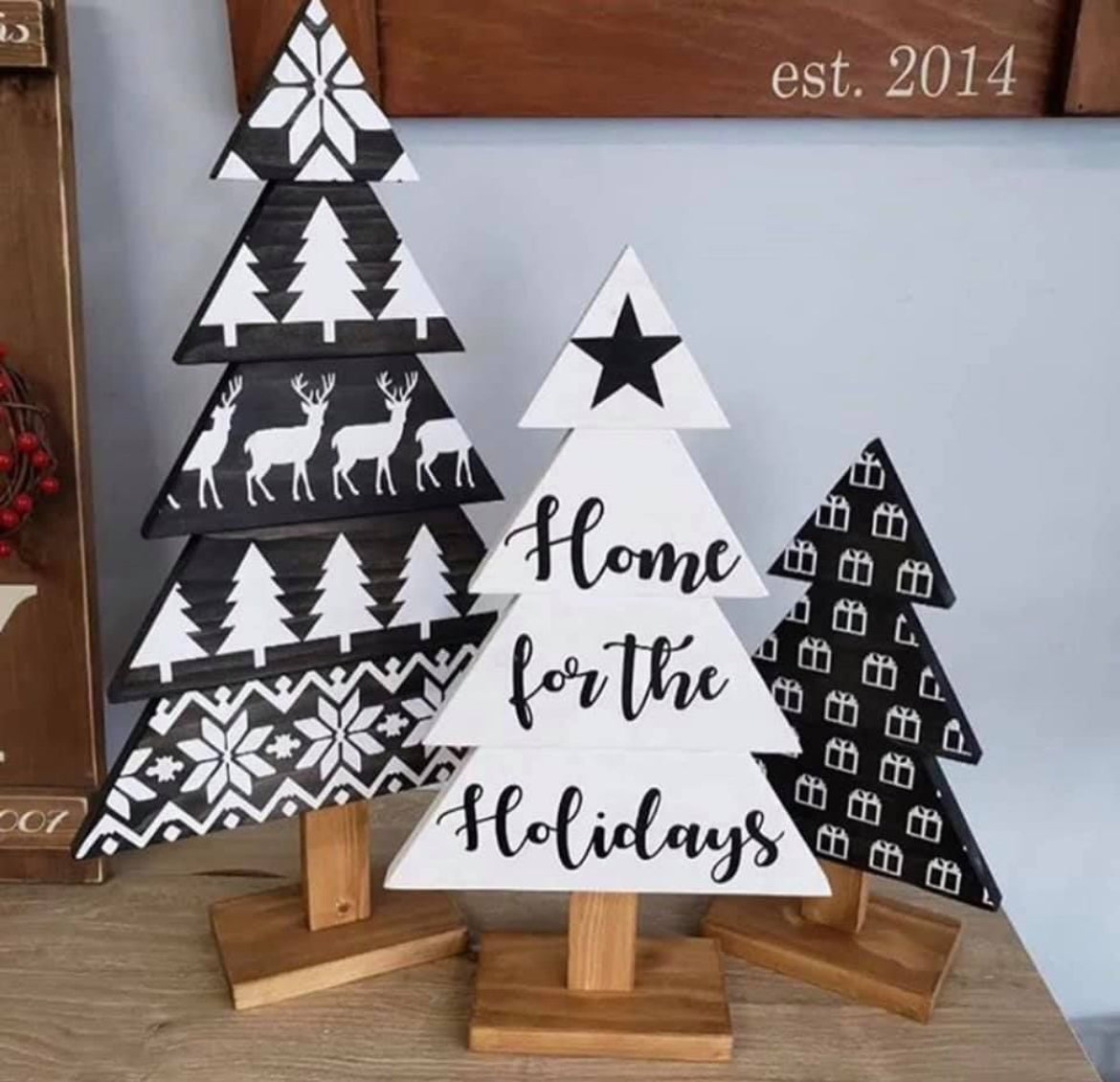 Join us December 4th @6pm at Hammer and Stain SoCal for this beautiful Christmas tree Trio workshop! Paint colors will be chosen at the studio during the event. Trees measure approx 21in, 17in and 13in tall. This registration will allow for one adult to make ALL three trees!