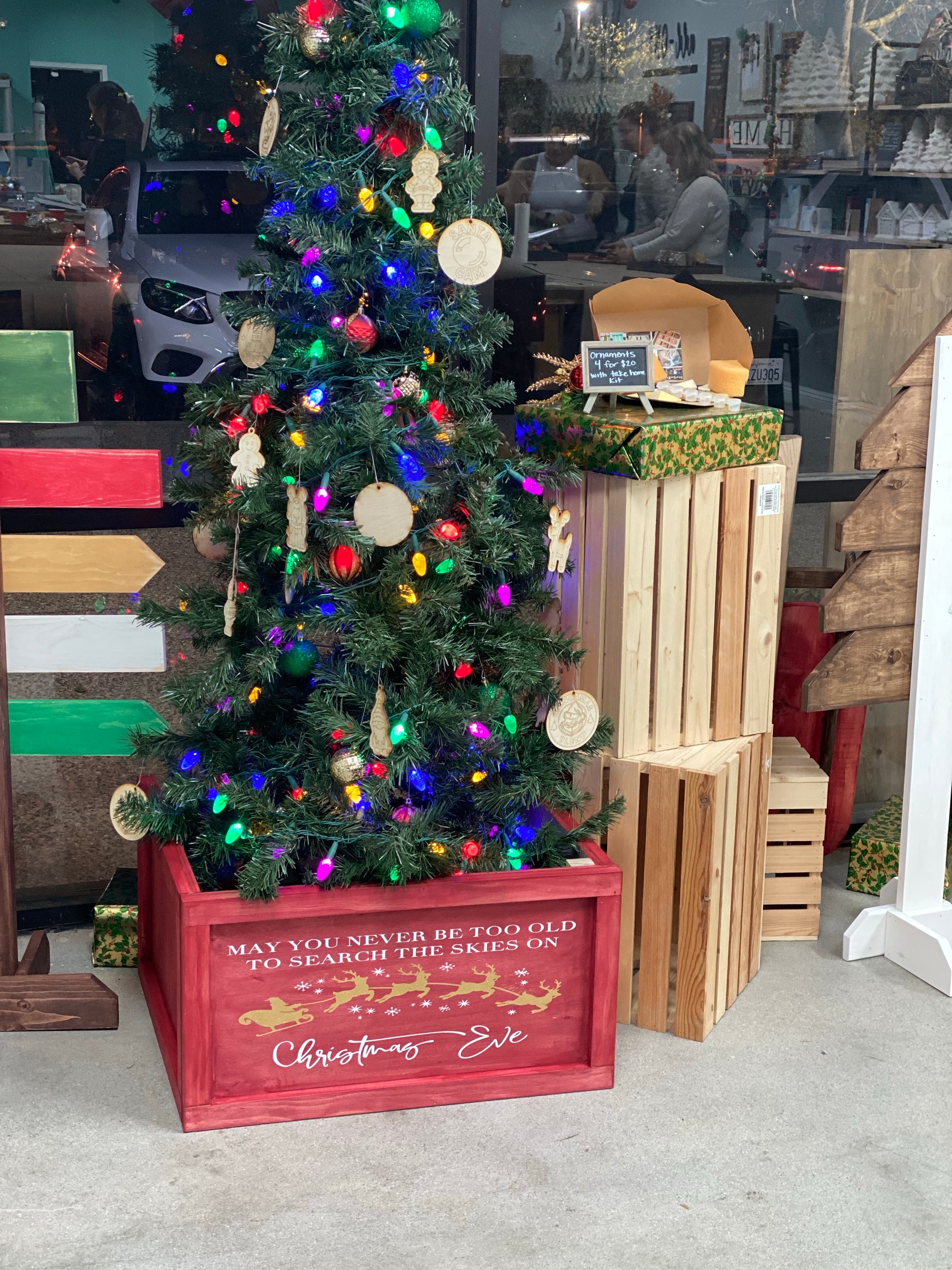 Customize your project in studio with your choice of stain & paint colors. This registration will allow for one adult to make a 14" tall tree box.